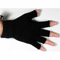 Ridiculously cheap gloves when I bought them. I bought them to keep my hands warm for keyboard work when our central heating failed. The material is thicker than I had expected, making them usable but not perfect for this purpose. In fact, the material was not what I had expected at all. Whereas some thinsulate gloves explicitly have "knitted" in the name, this pair does not. As a result, I had expected something like thin neoprene rubber diving gloves, but with the ends of the fingers missing. In reality, they are knitted from thinsulate, making them feel similar to woollen gloves.